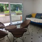 Grande Maison Familiale, Calme, Tranquille, 900 M De La Plage s'ouvre sur une vue luxuriante sur la cour intérieure. Cette villa de 3 chambres comprend une salle de bains avec une baignoire, une toilette séparée et une douche.